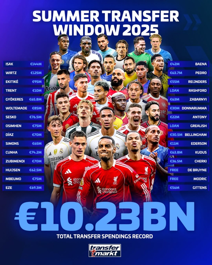 创造历史😱😱足坛夏季转会窗总支出102.3亿欧,刷新最高纪录