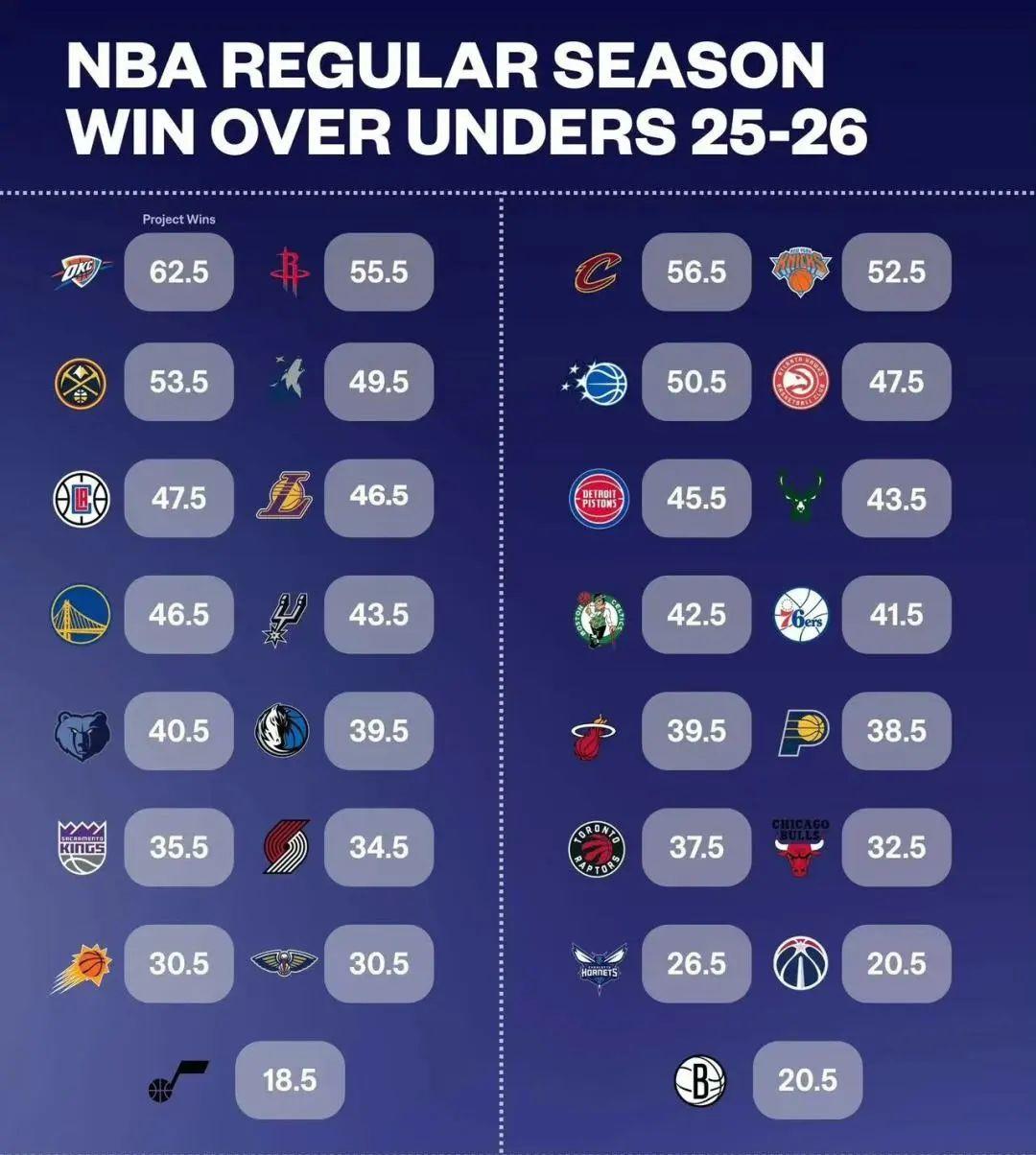 美媒也给出新赛季30支球队胜场数盘口